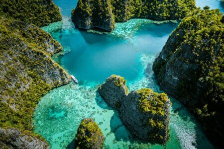 Situé à l’extrémité occidentale de la Papouasie indonésienne, l’archipel de Raja Ampat est considéré comme l’un des plus beaux sanctuaires naturels de la planète. Son nom signifie « les Quatre Rois » et fait référence aux quatre îles principales qui composent la région : Waigeo, Batanta, Salawati et Misool. Entouré d’eaux turquoise et de milliers d’îlots karstiques couverts de jungle, Raja Ampat offre un paysage spectaculaire encore largement préservé. Accessible principalement depuis Sorong, ce territoire isolé donne immédiatement le sentiment d’entrer dans un monde à part, où la nature règne en maître et où le temps semble ralentir.